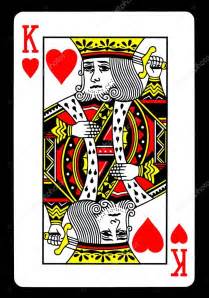 多年以后我才知道,红桃K也被称做自杀的国王。如果你观察这张扑克牌,你会看到他拿着大刀的手放在自己的脑袋后面(或者说用刀指着自己的头)。