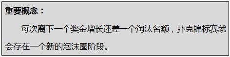 锦标赛泡沫圈产生在比赛剩余选手的数量比拿奖金的选手数量多一人的时候。