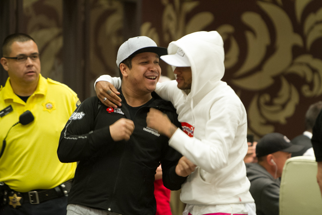 这是一场共计两桌的坐满就玩(Sit & Go)扑克赛,是世界扑克锦标赛主办方为这位超级球星和其好友特意准备的一场比赛,其好友包括PS战队的巴西玩家Felipe “Mojave” Ramos和Andre Akkari。
