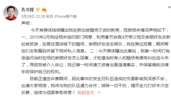 事件的源头来自孔令辉向新加坡金沙娱乐场借钱,不过正如上面所说,250万港元甚至不够孔令辉家的一辆车的钱,那他为什么要去借钱?抛开个人原因,这个行为已经犯了德州扑克中的一个大忌。
