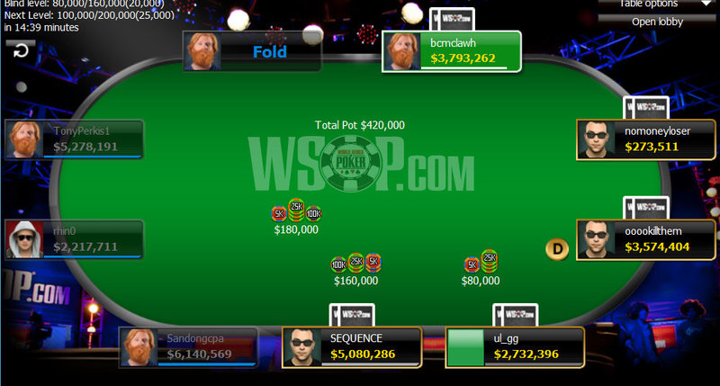 Joseph在比赛还剩6人时开始好运连连。他首先将Michael Jacoby淘汰在第六名(奖金21,828美元)。然后,他的A♥ A♣ 撞上了Bobby McLawhorn的10♠ 10♥。公共牌是8♠ 5♣ 4♠ Q♥ J♠,WSOP.com评价最高的牌手McLawhorn在第五名被淘汰(奖金29,205美元),Joseph也借此拿下了一个巨大的底池。