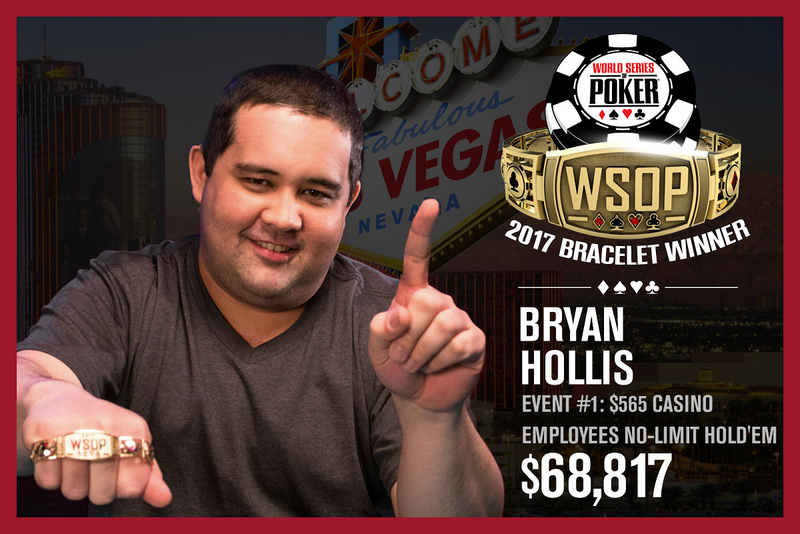 2017世界扑克锦标赛首项金手链赛事——$565买入娱乐场员工赛正式落幕帷幕,参赛玩家651人次,奖池$325,500,最终Bryan Hollis取得比赛胜利,收获个人职业赛事生涯首条金手链,奖金$68,817。
