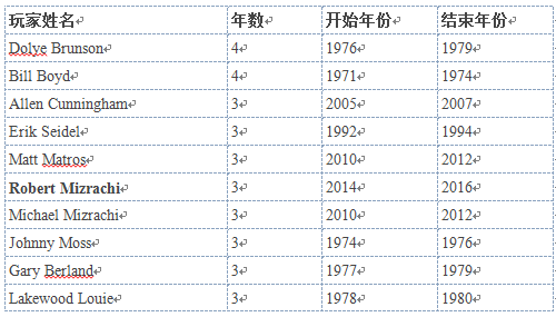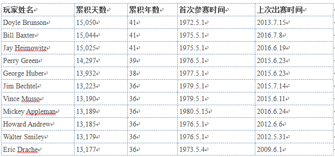 WSOP牌龄玩家表: