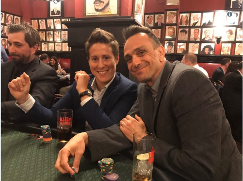 日前美国喜剧演员兼配音专家的Hank Azaria和牌坛收入最高的女牌手Vanessa Selbst现身百老汇AIDS关怀中心的一场慈善扑克赛,两人同桌并肩而坐。
