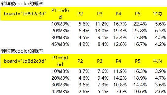 三、 除了天花被cooler,我们还很常常见到,转牌抽出花被cooler,这个概率又有多大呢?