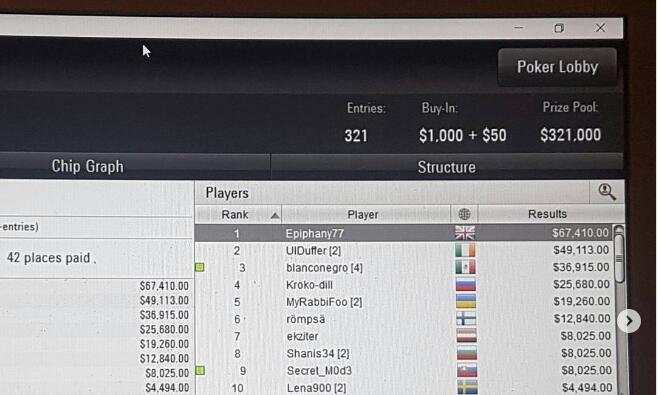 23岁的英国小伙Charlie “Epiphany77”Carrel似乎一直深受扑克之神的青睐。四年前,他在扑克之星存款15美元,第一次参加锦标赛就赢得了冠军,收获1180美元奖金。上周,Charlie Carrel又错报了一个1000美元买入的PLO8锦标赛(他原以为是无限德州扑克比赛),却误打误撞拿到了冠军,收获67410美元奖金。