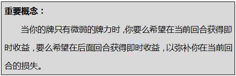 你必须细心地对待任何在当前回合或当前牌局损失权益的玩法。你或你的对手可能会为了将来的收益抛弃数学或改变游戏方式。他可能为了观察你的行动开许多张桌子。他可能观察你的玩法,然后得出了错误结论,比如你的玩法的含义或他应该如何应对。