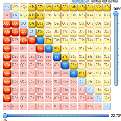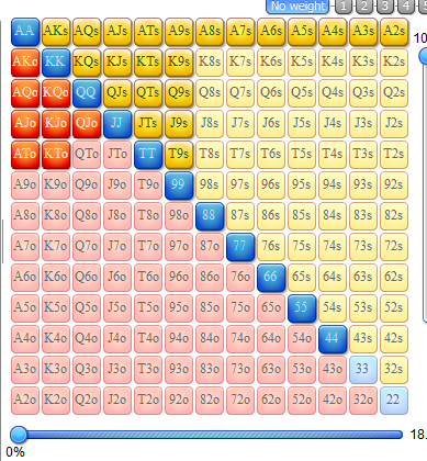 check所有的弱对子和顶对小踢脚,两对,set(用来平衡和提升自己check范围的ev)。