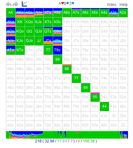 前位raise:set,顶两对(少部分的小对子做平衡),call顶对,高对,带对买花,停花。