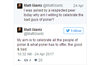 据猜测Cate Hall的拉黑和本次Matt Glantz主持的《美国扑克之夜》有关, 在本次邀请玩家中有Cate Hall不喜欢的人。