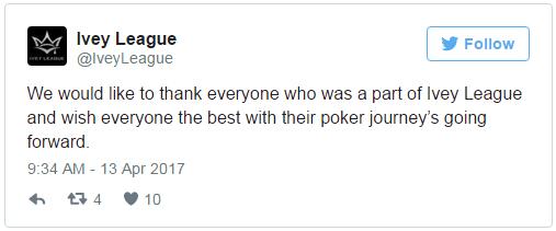 推文大意:我们感谢所有曾经的“Ivey联盟”成员,希望他们每个人在扑克前进的道路上一路顺风。