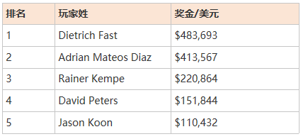 Rainer Kempe是比赛的季军,亚军是Adrian Mateos Diaz,冠军Dietrich Fast收获奖金$483,693。